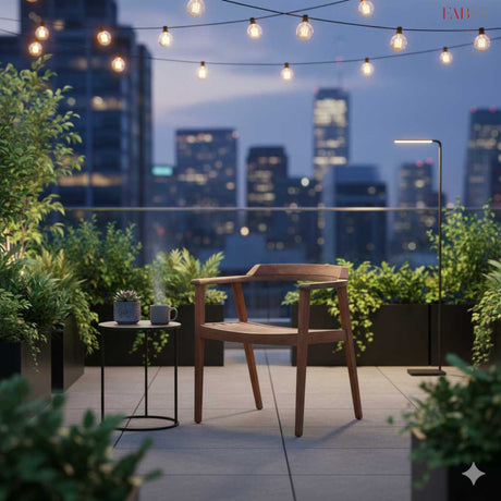 Coloca tu silla exterior de madera junto a una planta grande, una lámpara de mimbre y una manta ligera. Añade una mesa baja o una banca de la misma colección del catálogo FABRIC , y lograrás un rincón donde la ciudad se desvanezca y solo quede la calma.